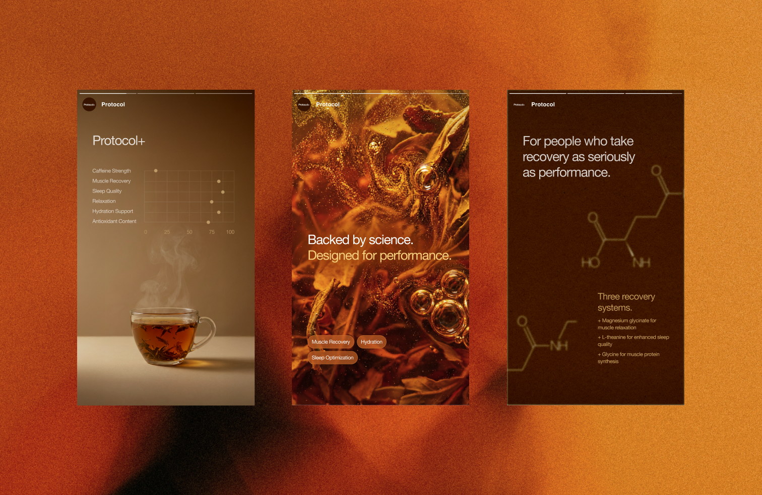 Protocol+ is a high-performance wellness tea brand designed for the analytical optimizer. By shedding the soft aesthetics of traditional tea, this rebrand treats recovery as a science, offering athletes and ambitious professionals a measurable edge in sleep, hydration, and stress management.